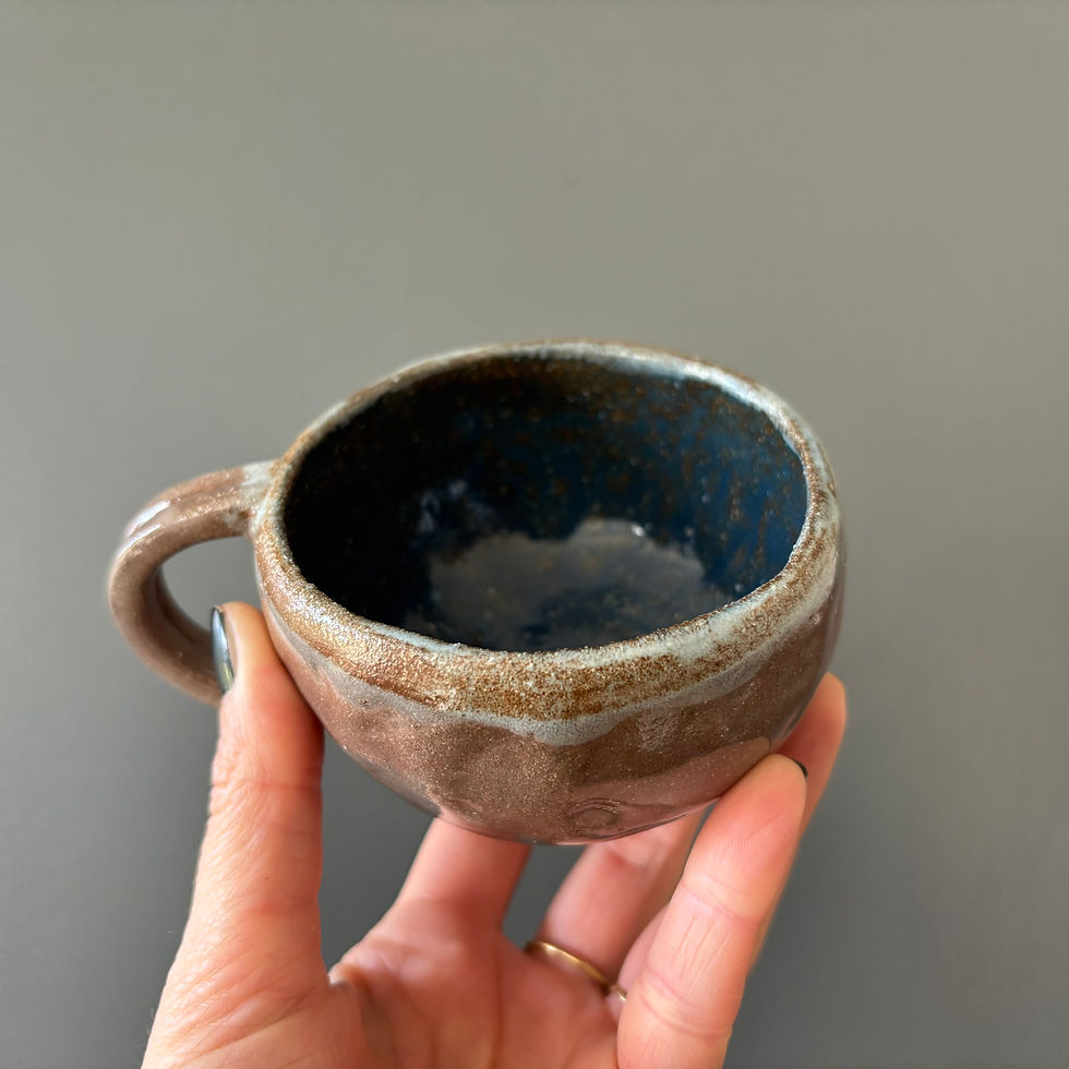 Ce grès me rappelle mes origines, l'Alsace et son grès rose des vosges. C'est un grès légermement chamotté donc avec un léger grin, nous sommes sur une collection plus brut, avec une terre légèrement granuleuse, aux reflets roses. J'ai sur certaines pièces placé du verre que je recycle pour obtenir cet effet de crystalisation au fond de certaines pièces. On a presque hate de finir sa boisson pour redecouvrir le fond de nos tasses. Toute les tasses et bols sont façonnés a la main avec la technique du pincé, pour une fois je n'ai pas utilisé le tour de potier.
